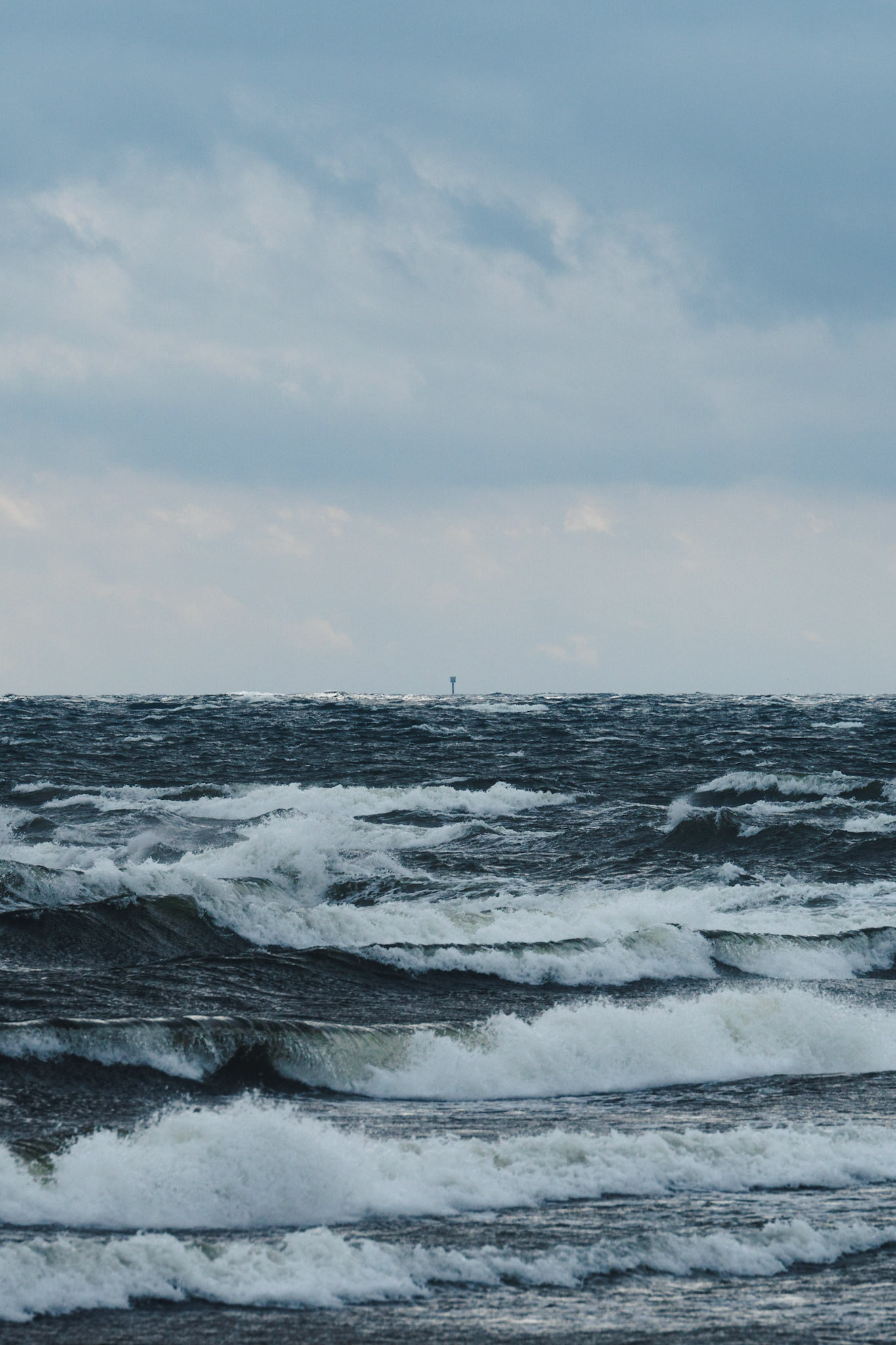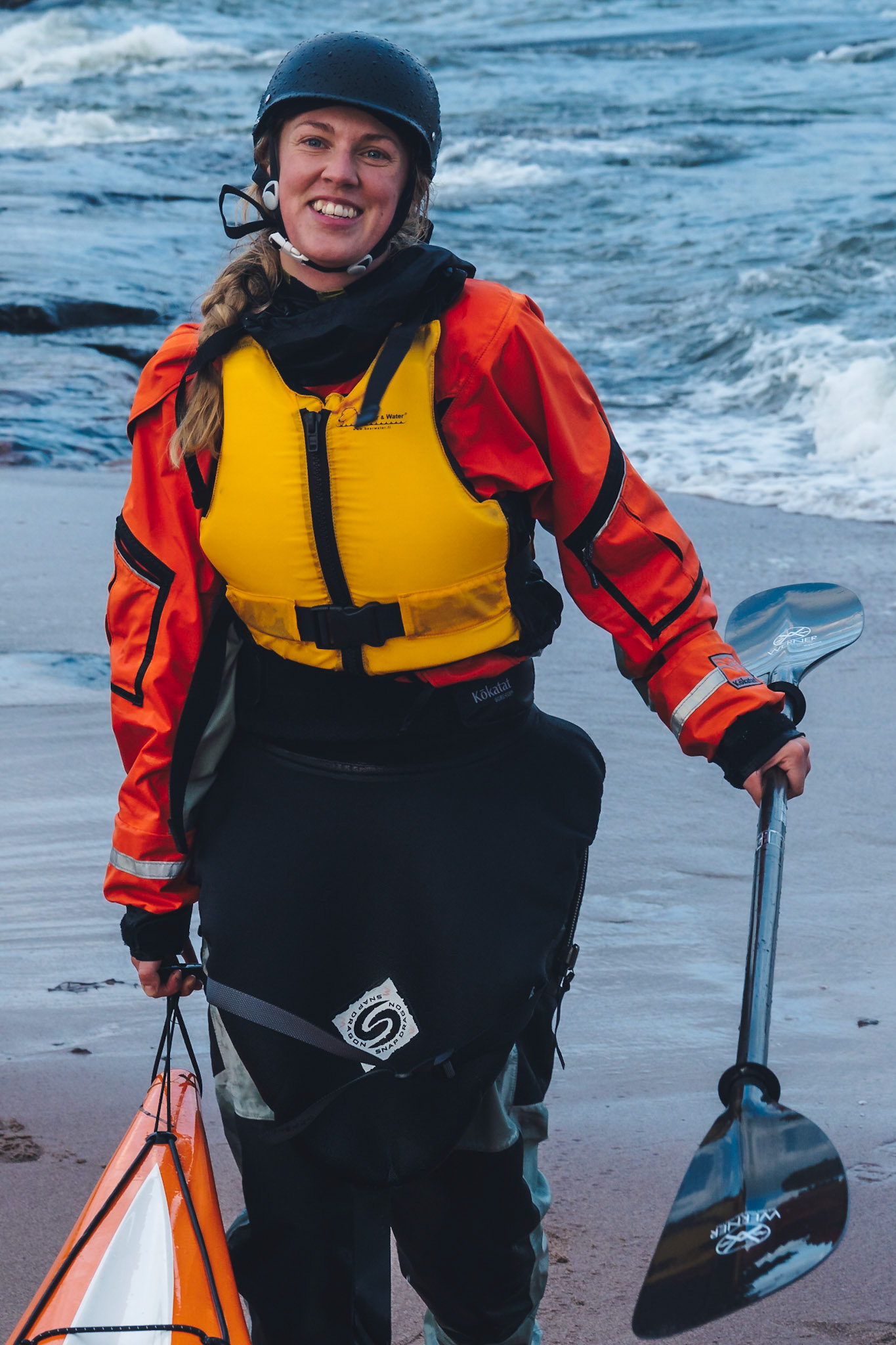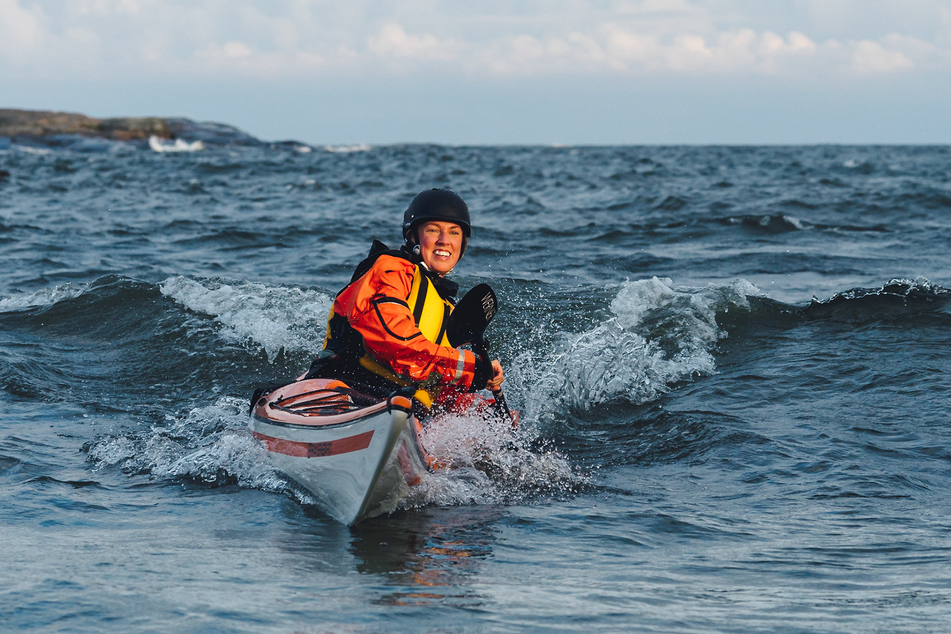 A restless autumn day inspired Jenny to paddle out. Strong winds from the south produced some fun waves to surf with the kayak and she could not resist, despite the winds blowing over 15 m/s.