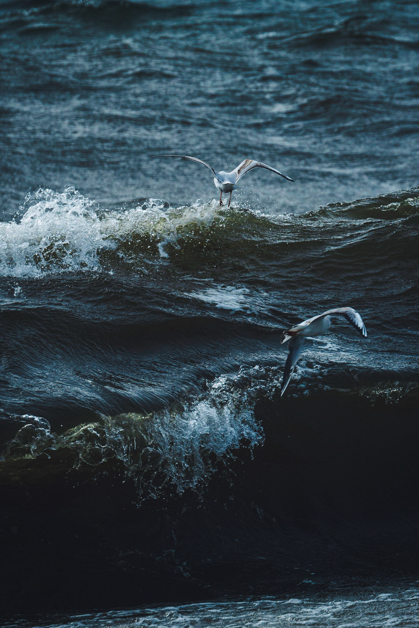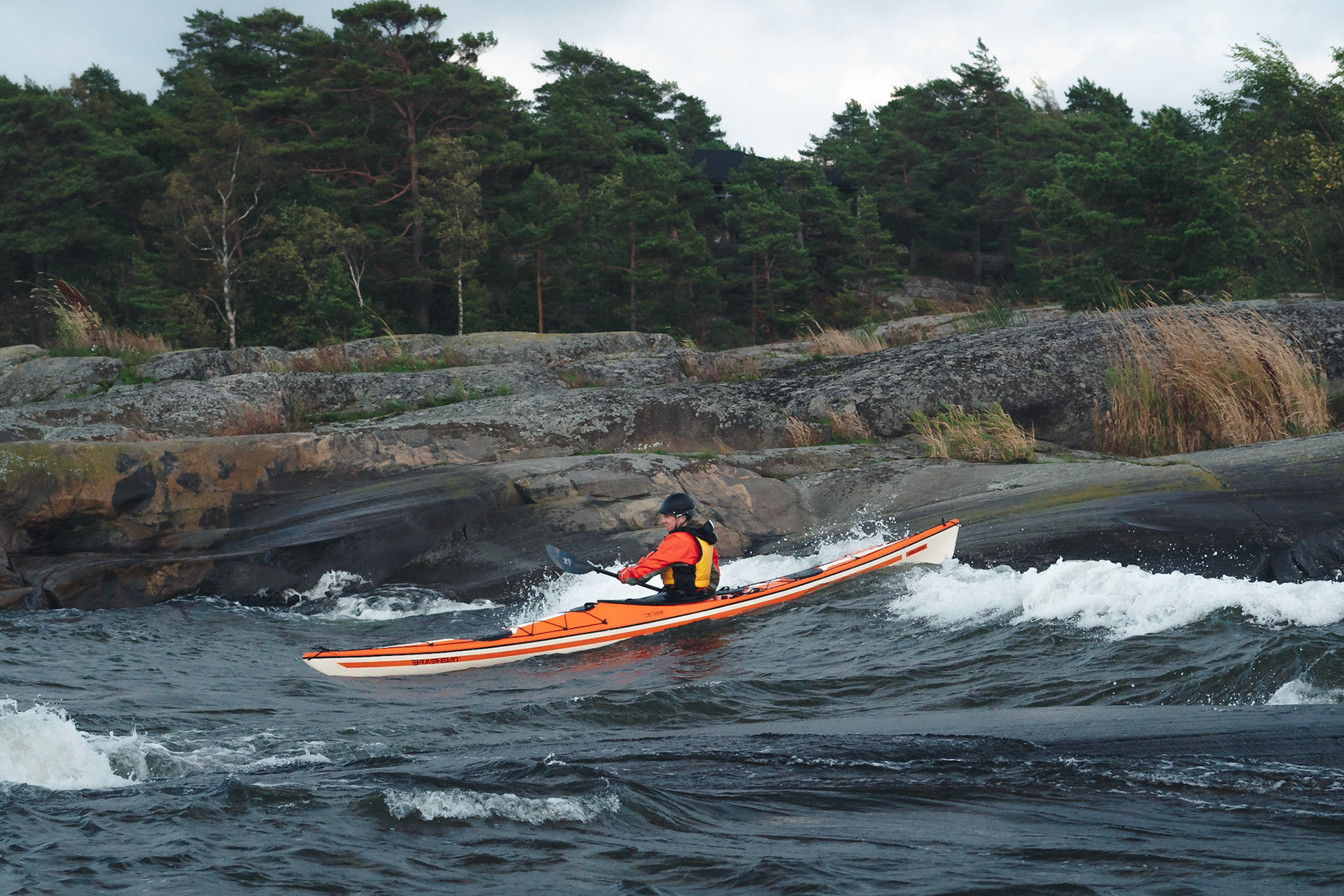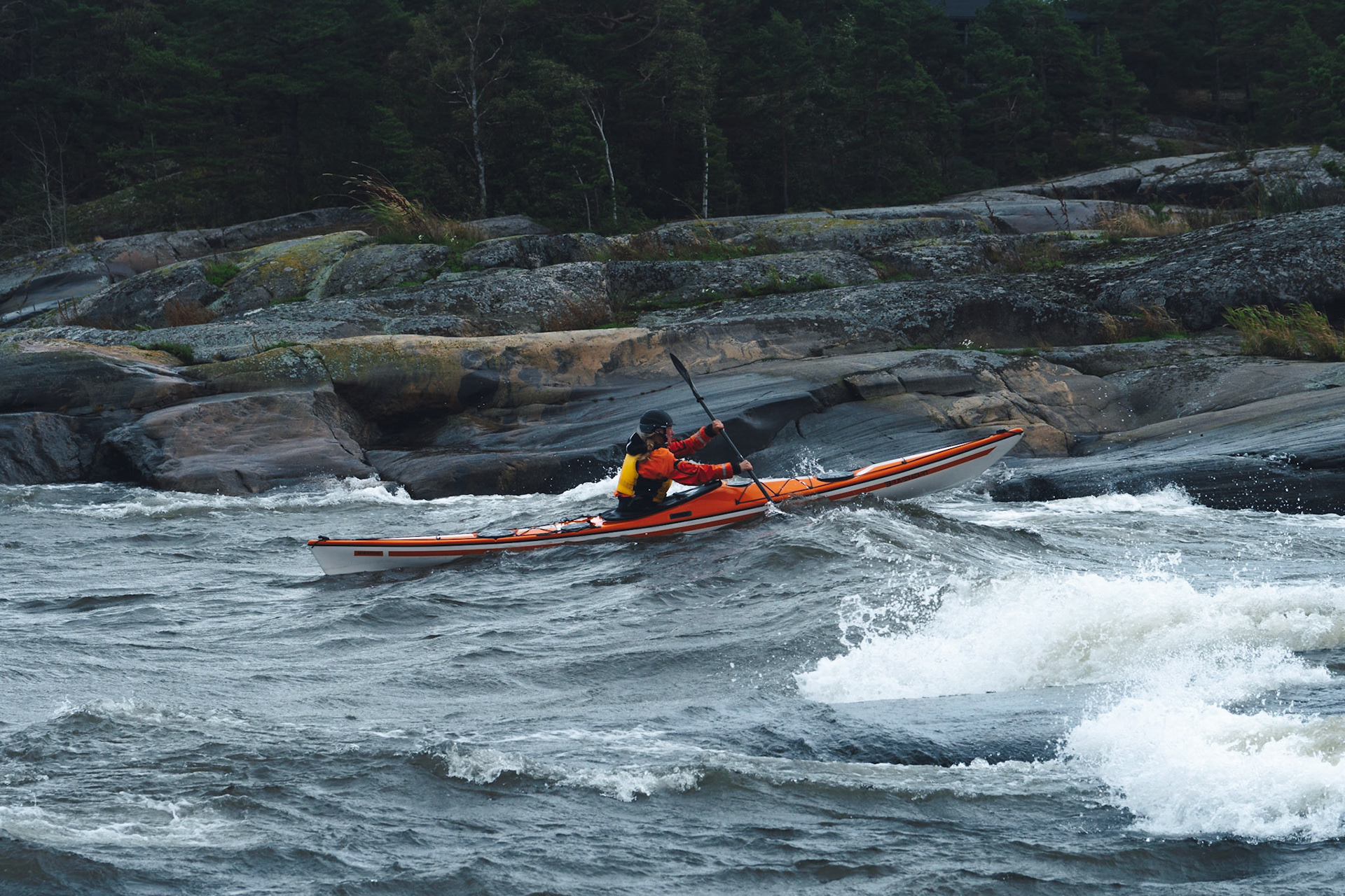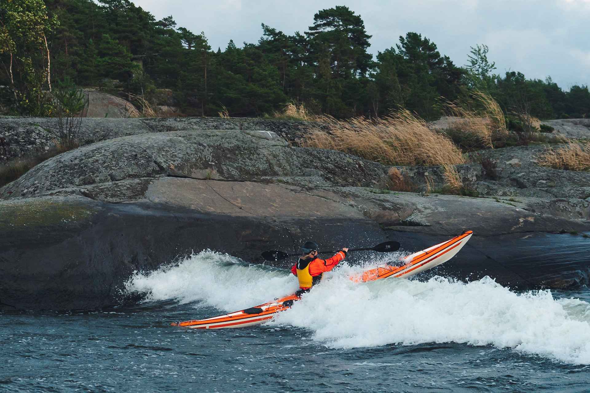 A restless autumn day inspired Jenny to paddle out. Strong winds from the south produced some fun waves to surf with the kayak and she could not resist, despite the winds blowing over 15 m/s.